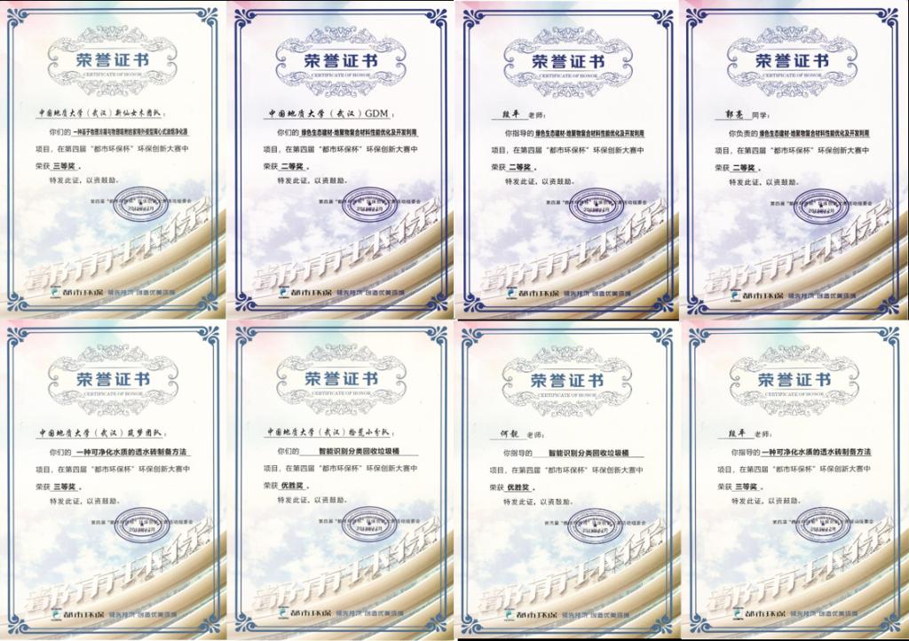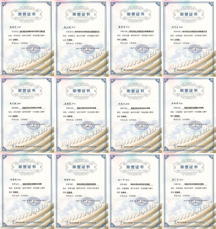 中地筑梦在第四届“都市环保杯”环保创新大赛中荣获的个人奖项(部分)