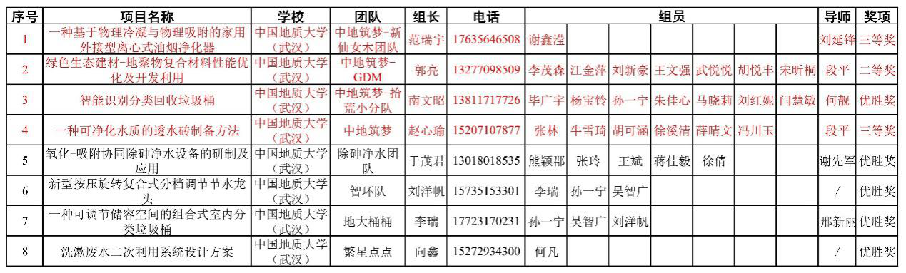 水资源与水文地质系、环境科学与工程系和材化学院材料科学与工程系,主要有靳孟贵教授(在创新科研方面提供指导)、刘延锋副教授(在创新科研和国家专利提供指导)、童蕾教授(在创新科研方面提供指导)、何靓副教授(在固废回收和专利方面提供指导)、段平副教授(在材料方面提供创新研究和专利指导)。