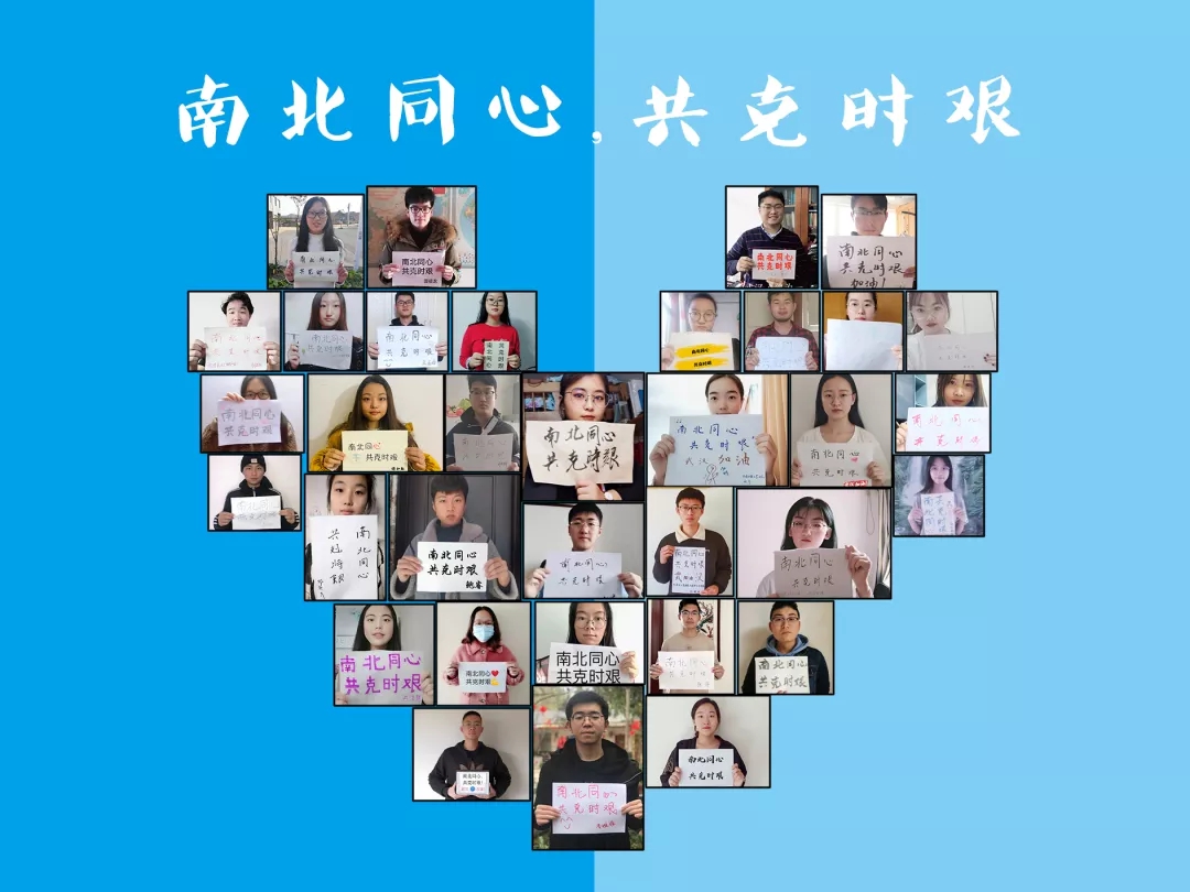 初级团校29名团员青年,联合召开“南北同心,共克时艰”主题团日,交流学习心得,共同制作10余幅应援图片,祝福武汉,为中国加油。在“众志成城同抗疫,青春聚力勇担当”主题团日上,邀请奋斗在抗疫战斗中的学生家长、青年志愿者在线分享抗疫故事,以身边人、身边事、身边情激励着青年奋进。
