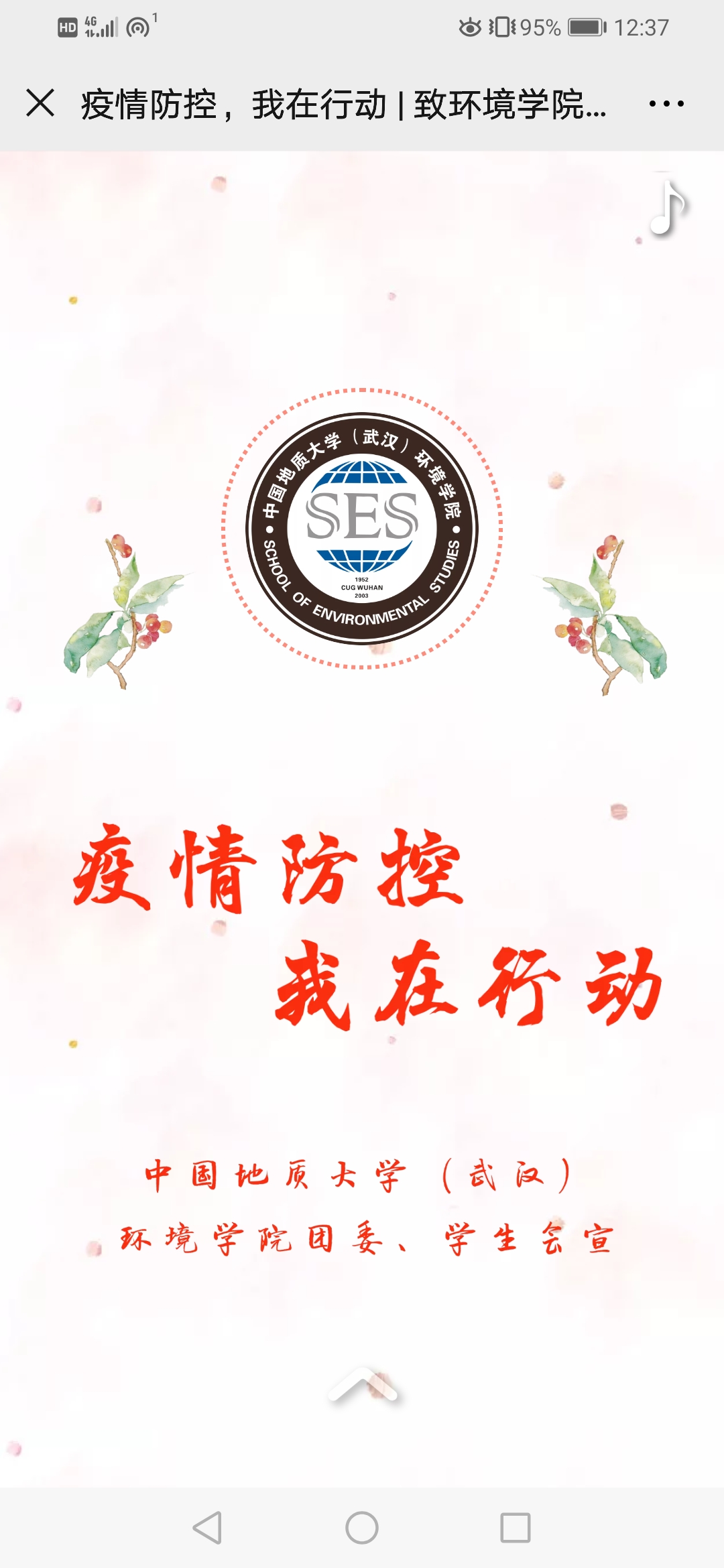 全体师生与全国人民一道,和衷共济、共克时艰,发挥“金字塔”组织体系效能,推进基层学生疫情防控工作,形成环境学子生态环保铁军合力,为武汉加油、为湖北加油、为中国加油!