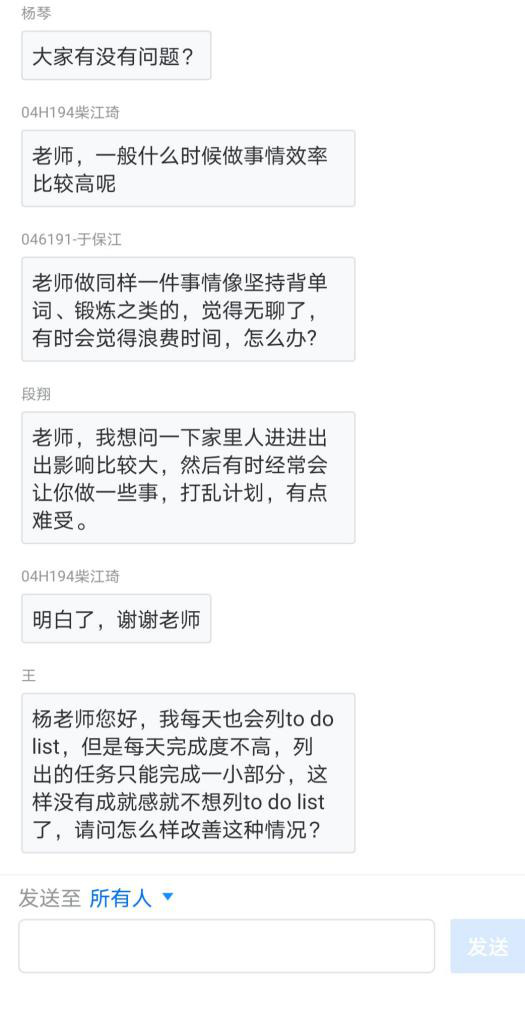 “如何做最好的自己?”杨琴老师从这一问题引出,引发学生对时间管理进行探索。