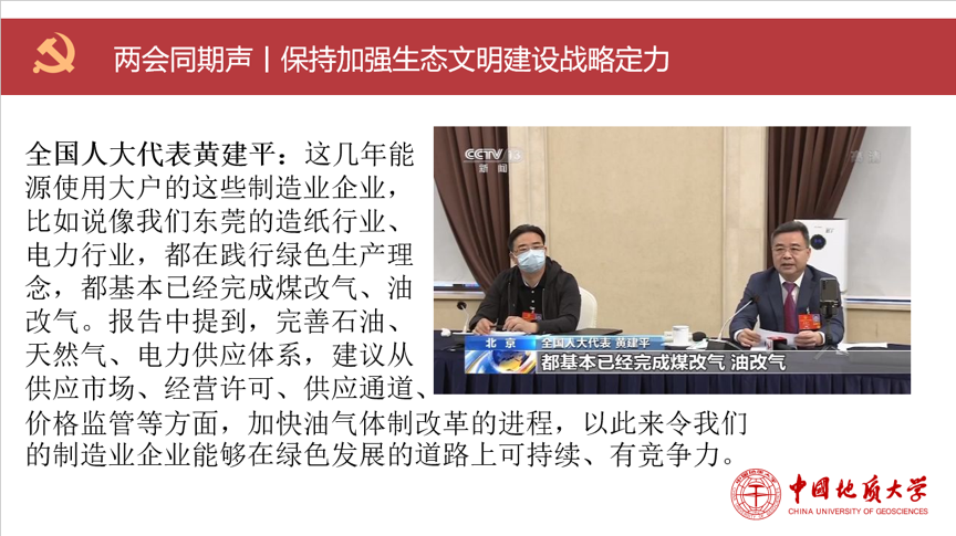 五月联合主题党日主要围绕“两会”内容中:保持加强生态文明建设战略定力、高质量坚决打赢脱贫攻坚战、保民生先保就业三部分进行重点学习,由实验班大学生党支部的张心阳同志、2019级博士研究生党支部的严璐同志、2019级学硕二班硕士研究生党支部袁淑卿同志领学。