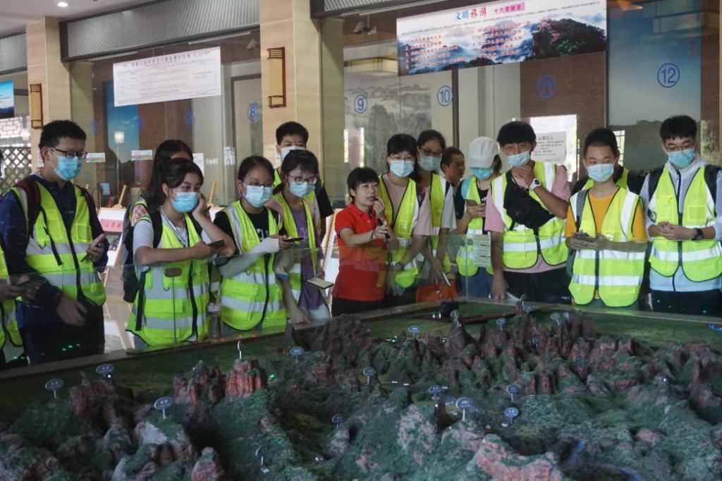丹霞山博物馆是实习的第一站,学生们在博物馆讲解员的引领下,通过观摩沙盘、宣传影片、标本等了解丹霞山区域地质概况,领略丹霞山的生物多样性,感受别样的丹霞文化。