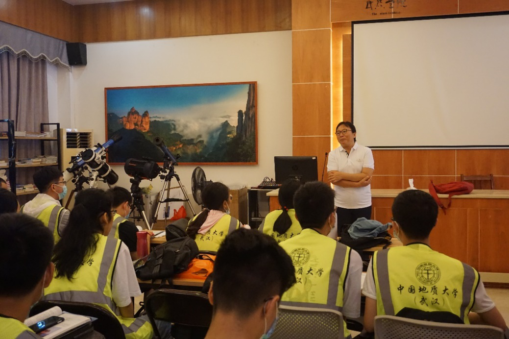 师生的到来表示热烈的欢迎,并从自己和地质的渊源讲起,分享个人对地质专业的了解。她说丹霞山世界地质公园对丹霞地貌的研究和地质学科的发展有着独特的意义和使命,希望各位学生能够在五天的实习期间里学有所获,把丹霞风采带回地大,将丹霞知识向大众普及。
