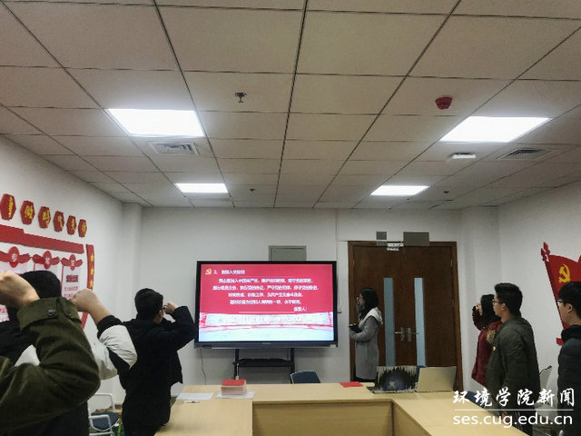全体党员齐唱国歌,重温入党誓词。