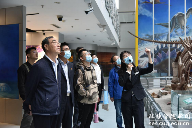张云飞一行兴致盎然地听取了博物馆讲解员关于博物馆发展历史沿革、馆藏文物的介绍,不时驻足欣赏恐龙骨架化石、各种珍贵矿物、宝玉石以及化石标本等文物,表示,逸夫博物馆是人类文明进步的“活化石”,是“科普育人的殿堂”,是“地质世界之窗”,充分体现了地大人攻坚克难使命担当,馆藏展品异彩纷呈,令人流连忘返。
