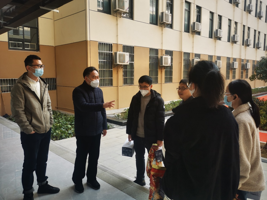 党委书记李素矿、党委副书记王海锋、辅导员赵恩民一行前往南望山校区54栋、57栋走访慰问寒假留校学生,并送上新春祝福和慰问礼包。