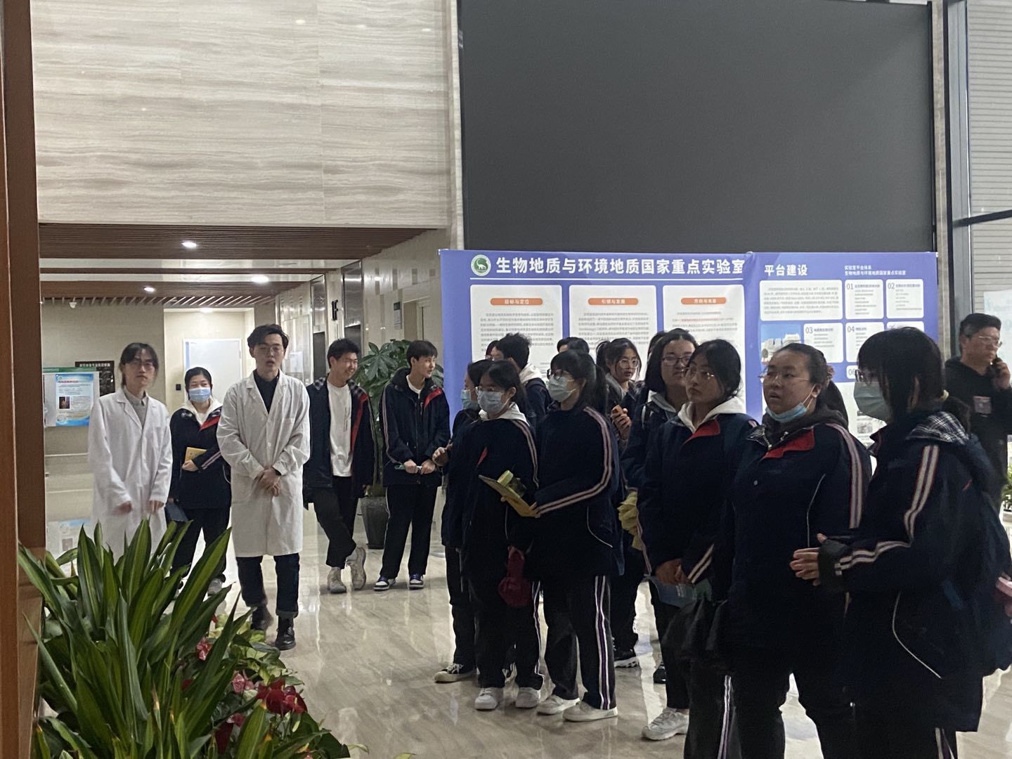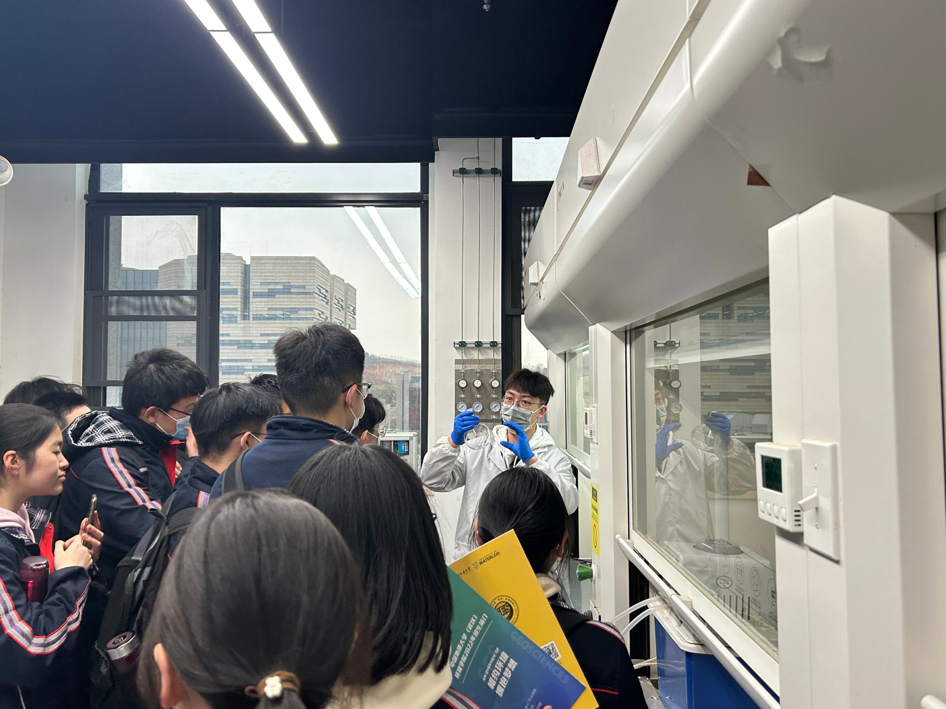 在生物地质与环境地质国家重点实验室,“张国旗班”宣讲团成员带领同学们参观了地质微生物实验室、环境有机化学实验室,向同学们科普了陆地生物与古环境模拟实验、细菌培养等相关知识。
