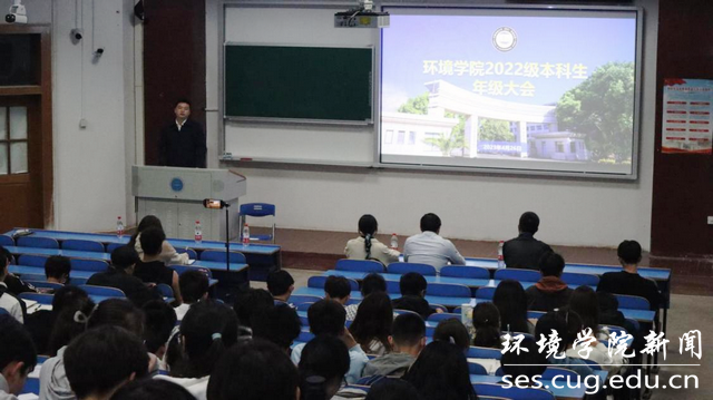 (通讯员段翔、徐溪清  摄影徐溪清  编辑耿婧为切实加强2022级本科生教育管理工作,弘扬践行“严在地大”校风学风,提高学生安全意识,做好“五一”假期安全教育提醒。4月26日,日本av片av 在南望山校区教一楼101召开2022级本科生年级大会。学校安全保卫部彭红进老师,魏景明老师,学校反诈宣讲员、地理与信息工程学院2022级本科生何敏君,学院2022级本科生辅导员王碧以及全体2022级本科生参加大会。