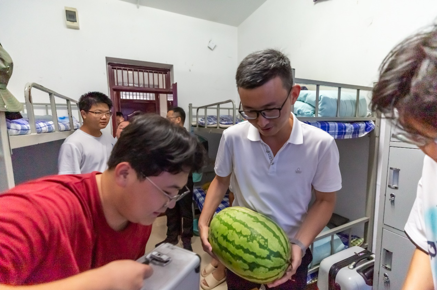 随后,学院领导一行前往宿舍看望实习学生。他们与同学们亲切交谈,关心了解同学们实习生活情况,交流实习体会感悟,他叮嘱同学们一定要注意人身安全,做好防暑降温,并勉励同学们认真学习、克服困难,掌握扎实的专业本领,并为师生送去定制地质书包、西瓜等慰问品。