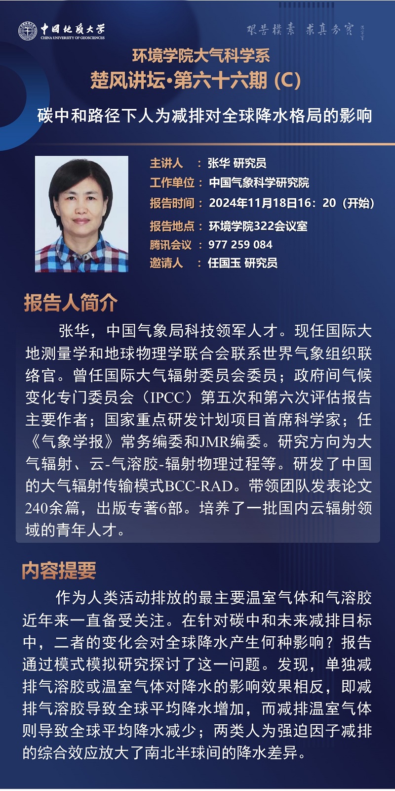 中国气象科学研究院张华研究员学术报告