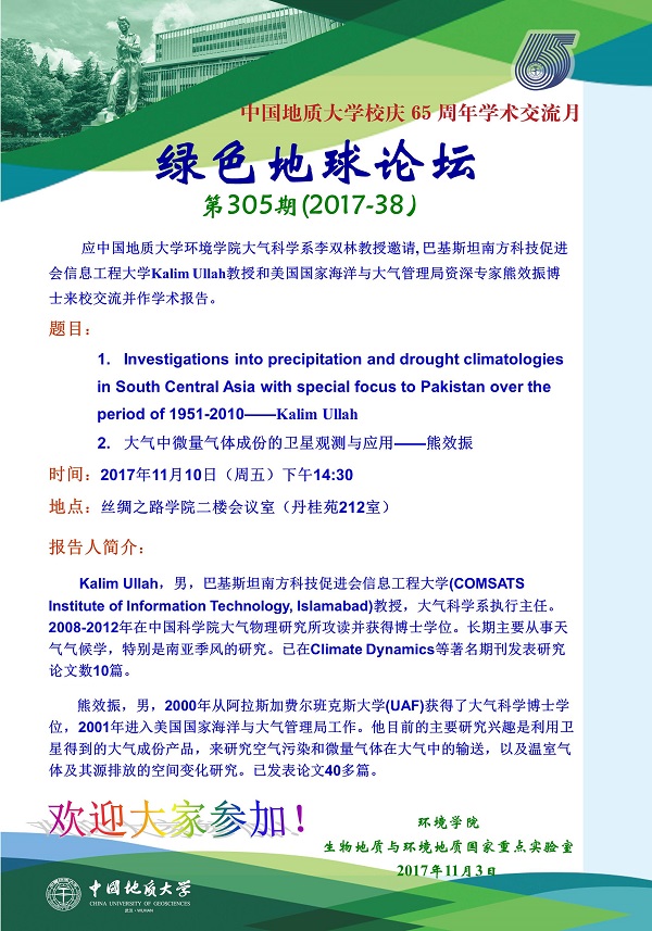 1. Investigations into precipitation and drought climatologies in South Central Asia with special focus to Pakistan over the period of 1951-2010——Kalim Ullah