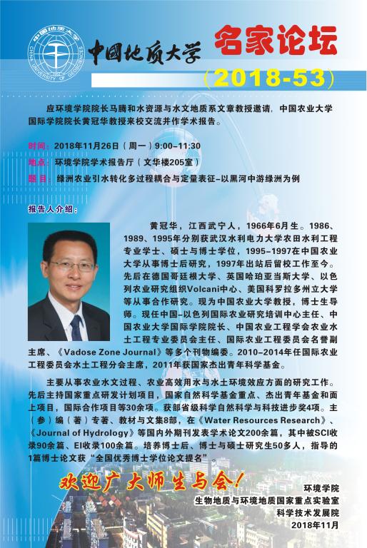 名家论坛(2018-53) 题目:绿洲农业引水转化多过程耦合与定量表征-以黑河中游绿洲为例 时间:2018年11月26日(周一)9:00—11:30 地点:日本av片 学术报告厅(文华楼205室)