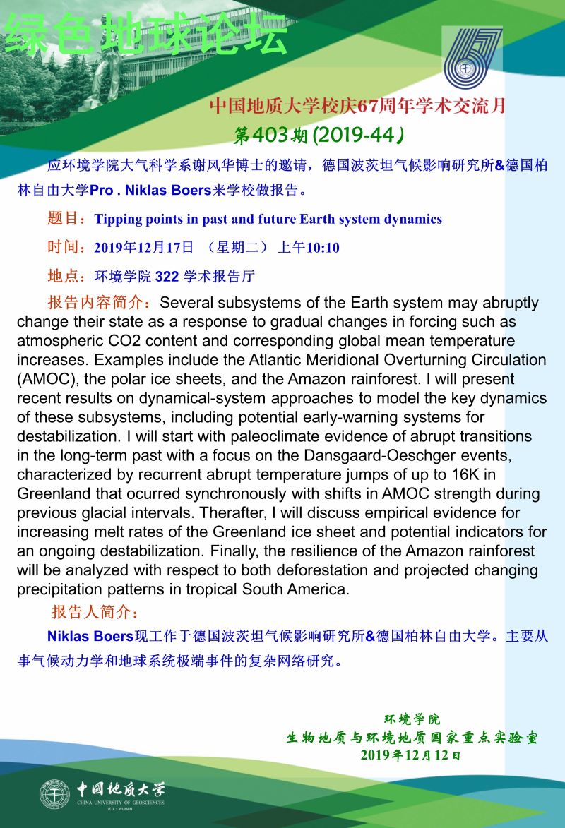 德国波茨坦气候影响研究所&德国柏林自由大学Pro.Niklas Boers学术报告