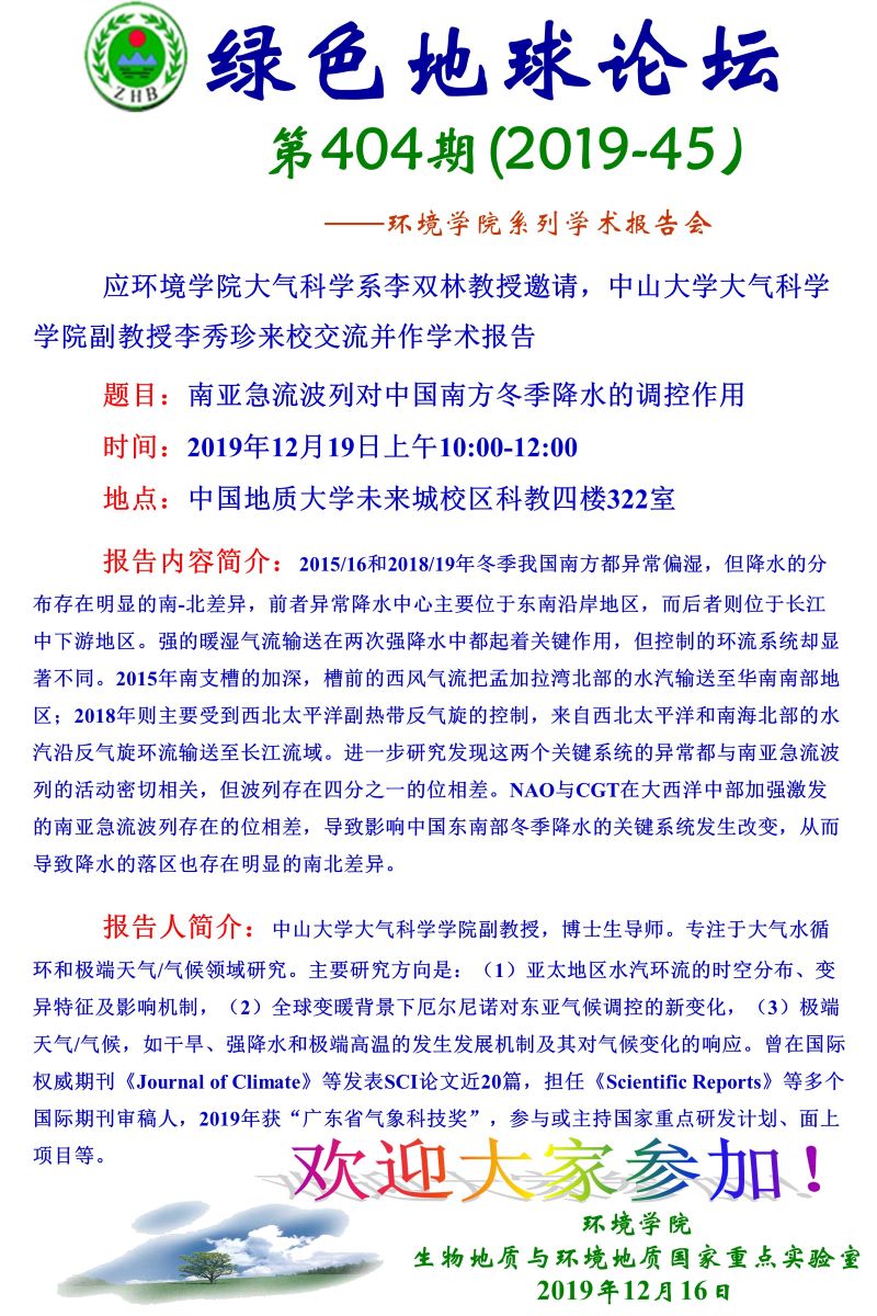 中山大学大气科学学院李秀珍副教授学术报告