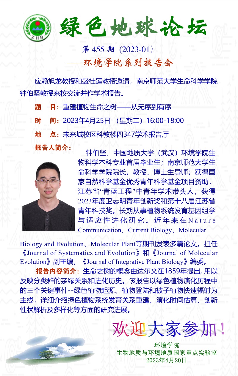 南京师范大学生命科学学院钟伯坚教授做客“知名学者学术讲座”