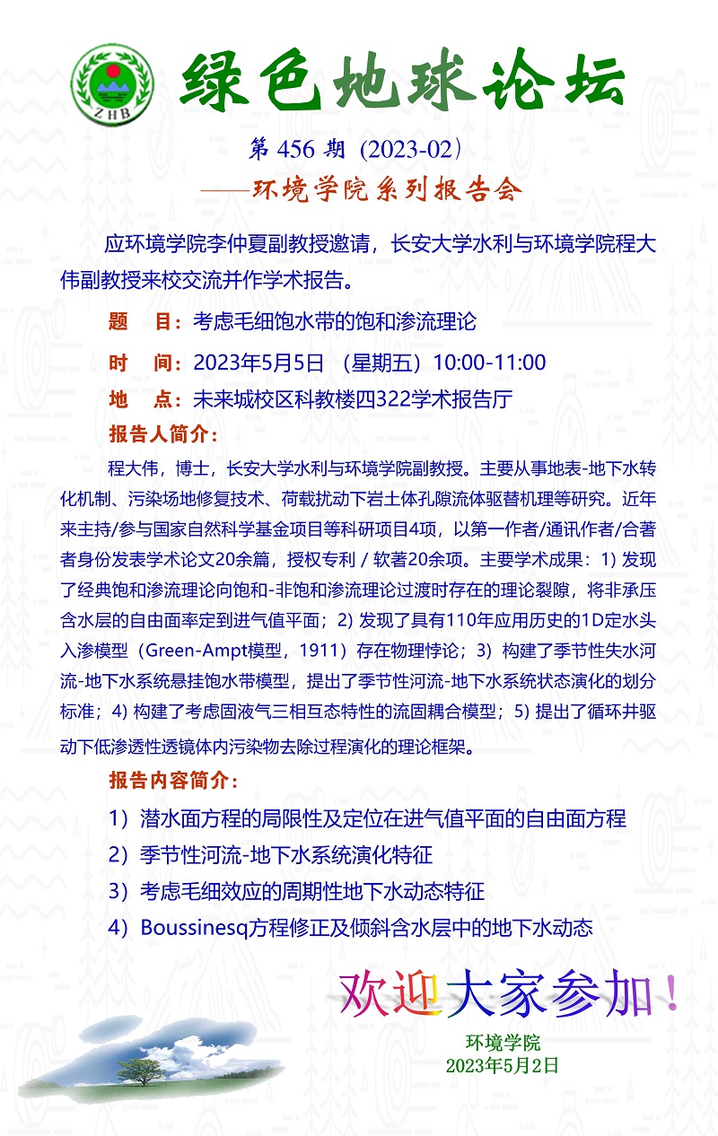 长安大学水利与日本av片 程大伟副教授学术报告