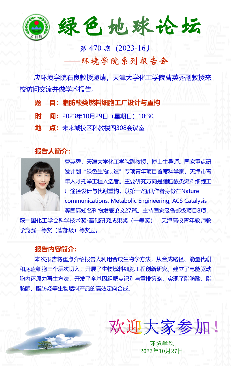 天津大学化工学院曹英秀副教授学术报告