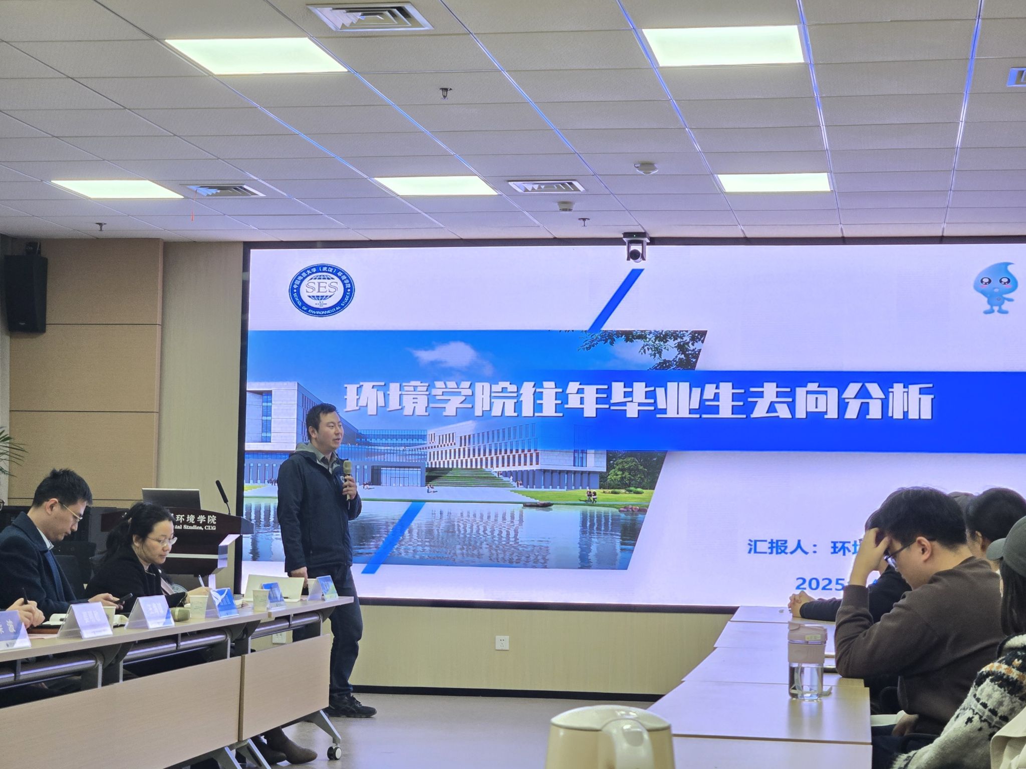 姜明敏总结讲话。他谈到,学生就业工作是“大事”,需要全院师生观念同心、意识同向、行动同频,家校社整体联动,做到信息共通、资源共享、责任共担;就业也是“小事”,是每个同学自己的事,需要从大处着眼、小处着手,重视求职中的细节之处,做好充足的求职准备;就业更是“本事”,不论是在校期间还是毕业走上工作岗位,都应发扬学校优良传统和学院育人精神,勇于实践和历练,增强就业竞争力。他希望学院老师尽可能给同学们提供指导和支持,帮助环境学子实现高质量充分就业;希望同学们在未来的学习和工作中能够稳得住、沉得下、拿得起、吃得苦,让能就业、就好业成为人生的“喜事”。
