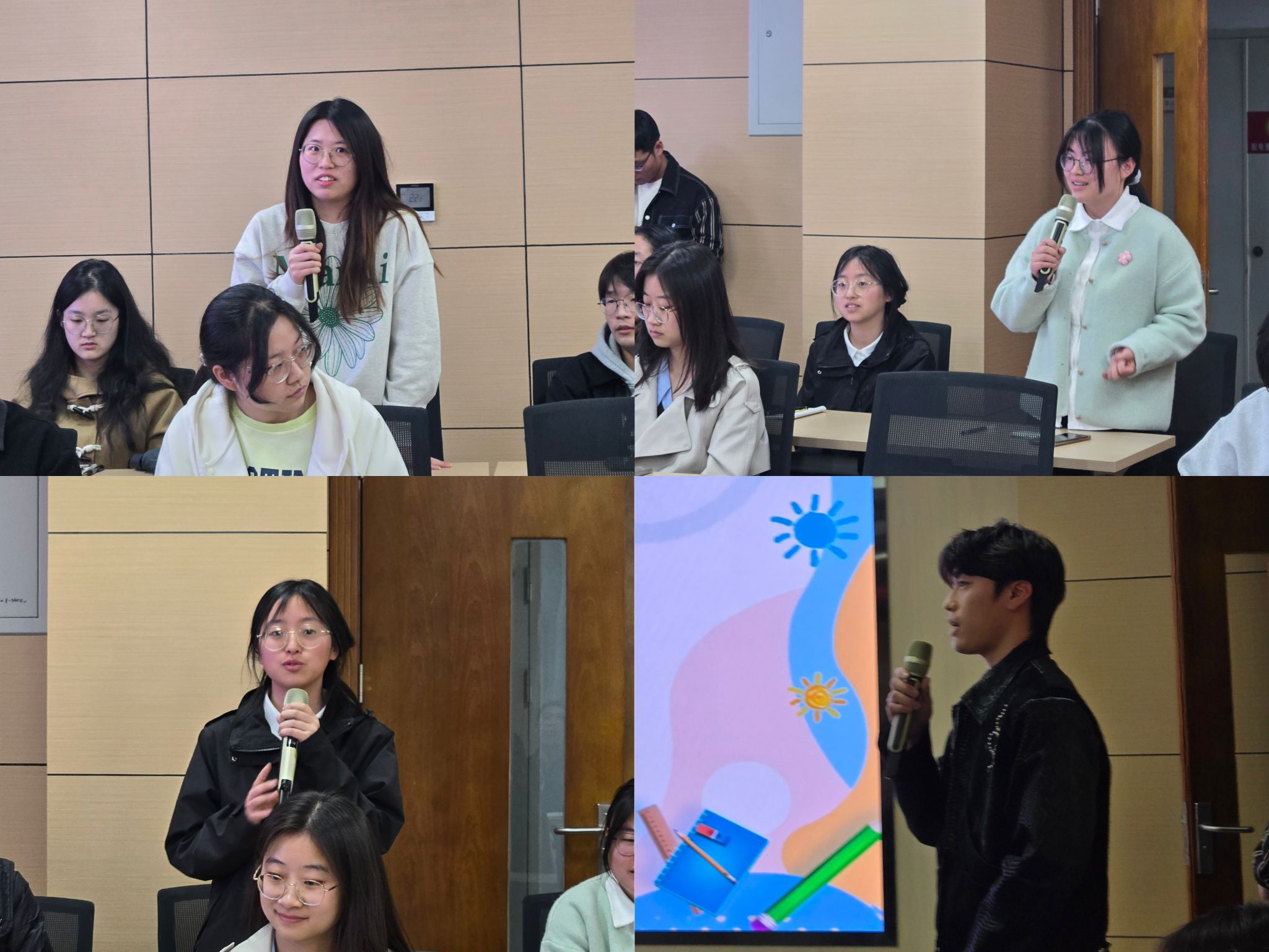 参会学生代表针对就业方面的问题与参会老师们进行了深入交流,老师们对大家提出的问题进行耐心解答,并结合自己的学习和工作经历,与同学们分享学习科研和就业方面的宝贵经验,为同学们的求学和求职规划提出合理建议。