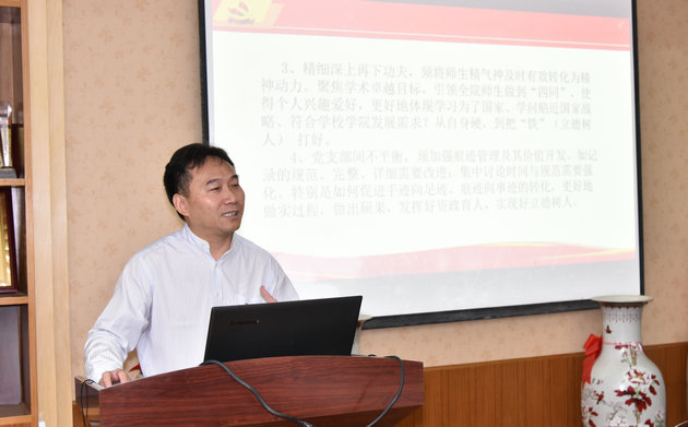 李素矿以《扣中心 抓党建 促发展》为题,对学院党建工作进行了汇报。他首先介绍了学院基层党组织设置、党员队伍、师生群体等基本情况。他说,在学校党委的坚强领导下,日本av片 党委高度重视党建工作,纳入规划和年度计划,统一部署与考评,积极推进党建领院、以史铭院、学术立院、特色建院、人才强院、文化兴院、开放活院、依法治院,做到科学治理;建立了层层传导压力体制机制,坚持党务与行政“一岗双责” 、业务与育人“一岗双责”和支部书记例会制度,坚持党员在哪里、党的建设就要延伸到哪里,师生在哪里、思想政治教育就要走心在哪里,实现从课堂到课外、从书本到实践、从室内到野外、从网上到网下全覆盖,引领全院师生爱党爱国爱家爱校爱院爱学爱习,做“四讲四有”合格党员、做“四有”合格教师、做“勤学修德明辨笃实”合格学生;依法依规全面从严治党,注重院党委、师生党支部和全体党员能力建设,通过“两学一做”学习教育、主题党日、院党委中心组理论学习、三会一课、党课等党内制度安排,以及积极健康向上、丰富多彩的党建、群团活动,引领师生履行好人才培养、科学研究、社会服务、文化传承创新、国际合作交流工作任务,并将其转化为育人能力;努力打造《学院党建与环境文化》、《师生实习风采展》、《我喜欢的习大大的一句话》名信片、《艰苦朴素 求真务实》等学院党建和环境文化特色品牌,发挥资政育人功能和网络思想教育作用,引领师生与以习近平同志为核心的党中央同心、学术方向与政治方向同向、学术卓越与思想卓越同行、学术魅力与人格魅力同在;选塑优秀党员、师德先进个人、良师益友、优秀班主任、学习标兵等师生先进典型,让好人好事影响身边的师生、带动更多师生追求卓越,充分发挥好学院党委政治核心作用、师生党支部战斗堡垒作用和党员的先锋模范带头作用;院党委牢记主体责任和书记第一责任,班子成员履职尽责,注重调查研究,结合试点学院改革和双一流建设进行创新实践,实现从手迹向足迹、从痕迹向事迹转化,营造立德树人的良好环境,提振师生干事创业的精气神,确保学院卓越发展的良好态势。最后,以问题为导向,深刻剖析了学院党建工作存在的不足和进一步学、查、改的努力方向。他认真回答了督查组的提问。