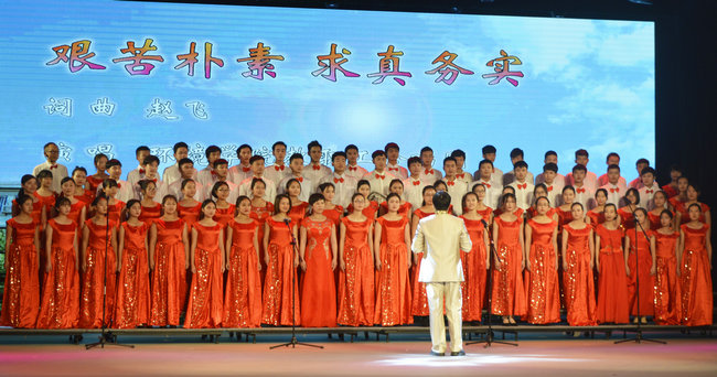 ;     组织师生同唱一首歌——《艰苦朴素、求真务实》。通过唱校训、唱十六字人才培养理念,让每一位老师牢记教书育人之责,让每一名学生铭记为中华民族伟大复兴而学习的使命,增强师生工作、学习、生活的动力感和快乐感。
