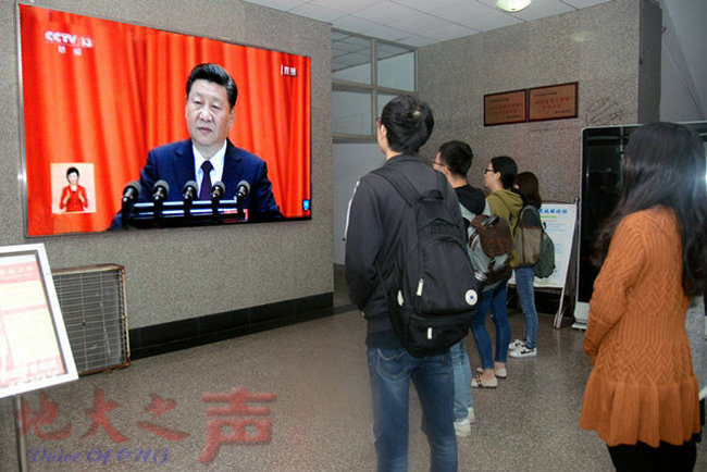 日本av片 学生驻足观看十九大开幕会