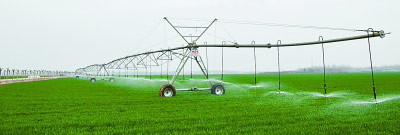张学海摘自《光明日报》)为应对地下水资源短缺,河北省衡水市冀州区周村镇在麦田进行喷灌作业。(新华社发)