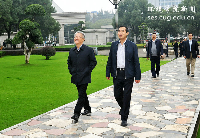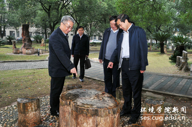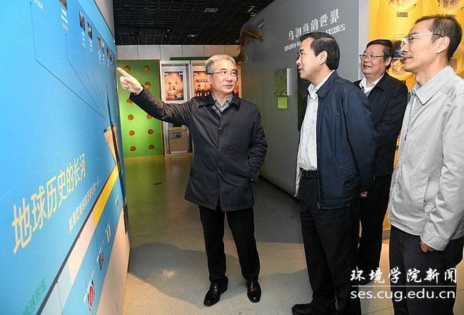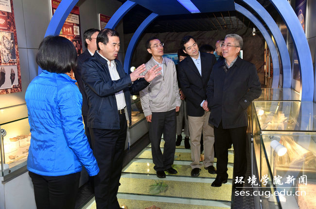 座谈会前,宇如聪一行参观了逸夫博物馆、院士长廊、四重门、化石林等校园文化。