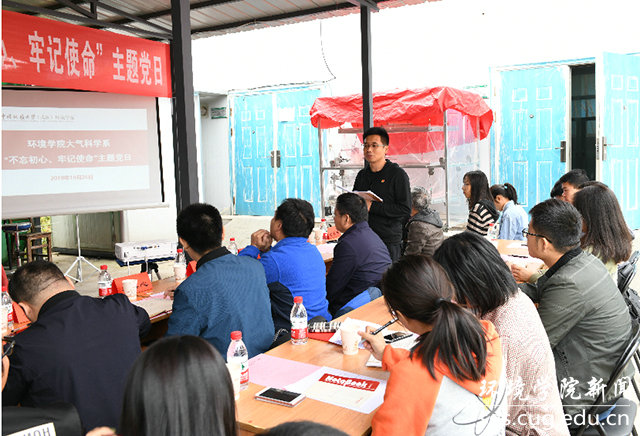 党委书记李素矿讲话。他指出,这是在主题教育过程中进行的一次特殊的、别开生面的主题党日活动,开在了实验场所第一线,开在了保障世界军运会空气质量的第一线,开在了“三全育人”综合改革的关键时期。他指出,“不忘初心、牢记使命”主题教育总要求是守初心、担使命,找差距、抓落实。大气科学系党支部做到党建和业务有机融合,师生联动、团队作战,高质量服务军运,凸显了党建领航作用,彰显了“七个有力”,党支部战斗堡垒作用和师生党员模范带头作用在党建、思政工作、三全育人、教育教学、科学研究、服务社会中均得到了有效体现。他希望,大气科学系党支部要围绕培养红专能优人才、争做时代先锋等方面,把党建工作做得更实更细,把“三全育人”工作精细化,把党建标杆和思政教育示范效应释放出来。认真总结,将好的经验、做法加以全面系统梳理,加大宣传力度,讲好教书育人初心、使命与担当的“大气”故事。他表示,学院党委一如既往地关心和支持大气科学系的建设发展,为师生排忧解难,希望大家保持积极健康向上向善的精气神,共同为学校和学院建设发展贡献更大的智慧和力量。