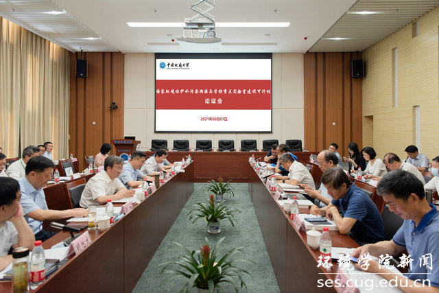 (武汉)校长王焰新院士、副校长赖旭龙、相关学院及职能部门负责人,共建单位中国长江三峡集团有限公司科技创新部主任李文伟、副主任李晶华、子公司长江生态环保集团副总经理李巍,实验室主要成员等参加论证会。