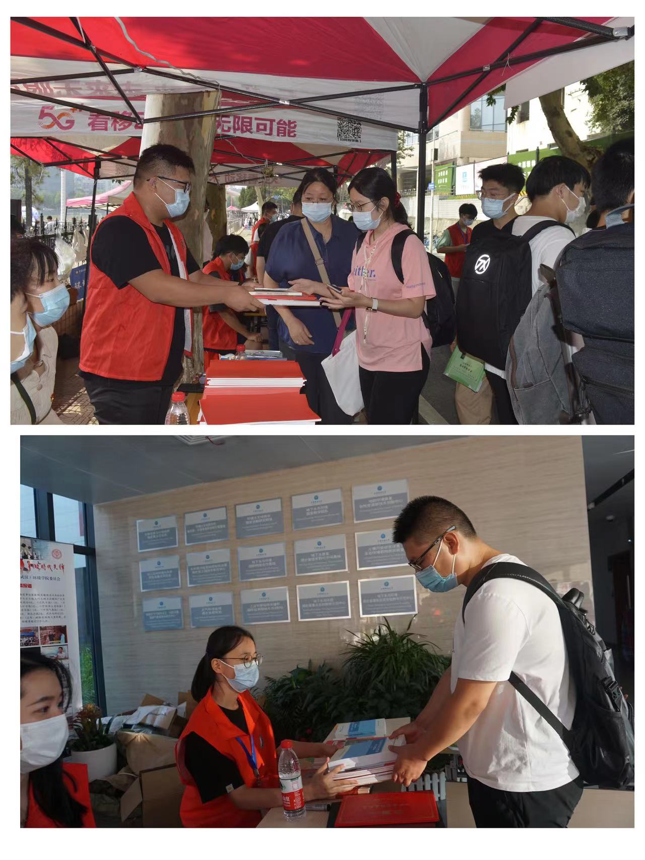 “张国旗班”志愿团志愿者向新生发放“1+6”系列丛书