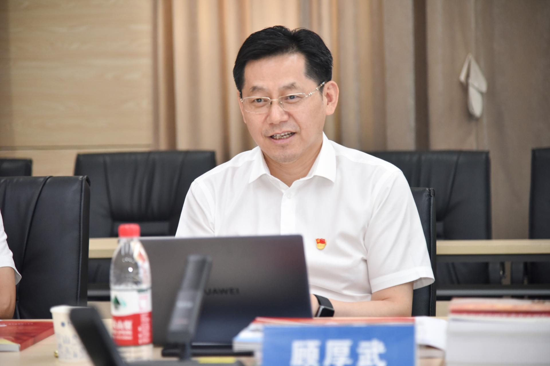 党建“双创”工作成果展和全国12个以英雄榜样人物命名的全国党建工作样板支部成果展。李素矿介绍学院基本概况、党建工作体系、三全育人改革、跨学科教育研究、张国旗班行动计划、“4+N”美丽中国课程思政、“1+6”党建资政育人载体、兄弟院校交流互鉴、领导关怀指导和社会媒体反响等十个方面双创成果。李素矿对组织开展全国以英雄榜样人物命名的全国党建工作交流会情况进行了介绍。参观过程中,顾厚武与学院师生进行了亲切互动交流。